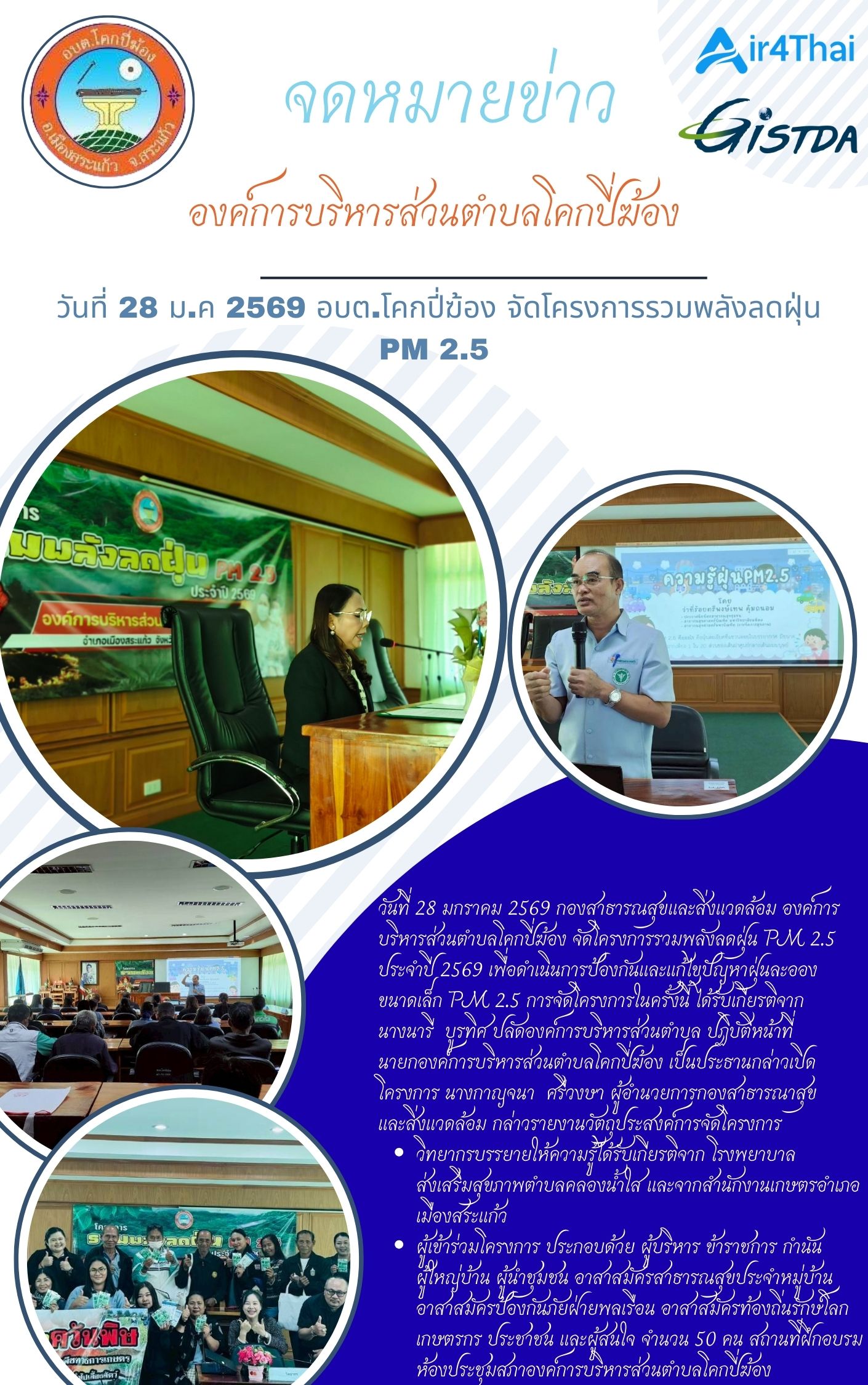 องค์การบริหารส่วนตำบลโคกปี่ฆ้อง จัดโครงการ รวมพลังลดฝุ่น PM 2.5 เพื่อดำเนินการป้องกันและแก้ไขปัญหาฝุ่นละอองขนาดเล็ก PM 2.5 ให้กับประชาชน ณ ห้องประชุมสภาองค์การบริหารส่วนตำบลโคกปี่ฆ้อง