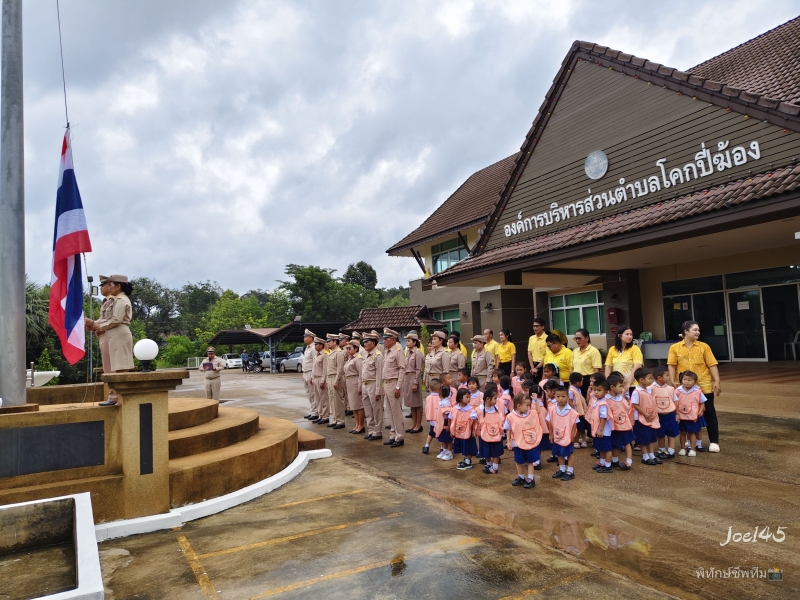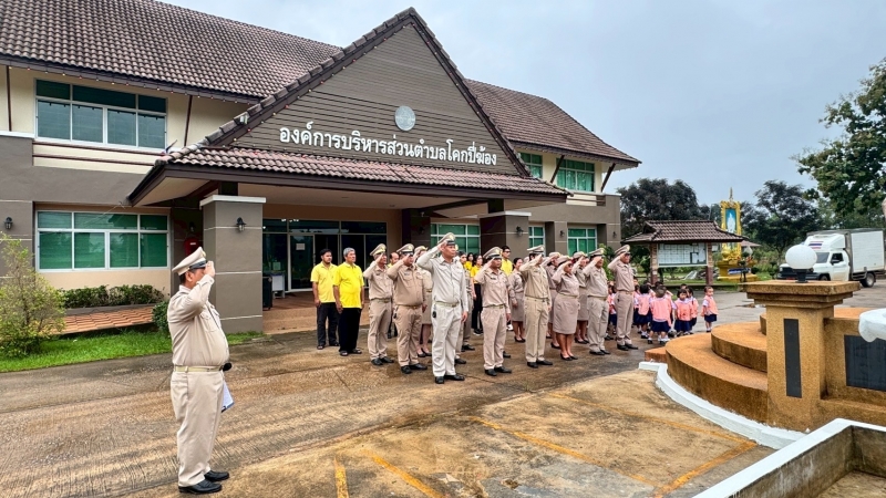 วันจันทร์ที่ 29 กันยายน 2568 เวลา 08:00 น. นายสมโชค เคลือบคลาย นายกองค์การบริหารส่วนตำบลโคกปี่ฆ้อง นางแพรวพรรณ อ่อนน้อม รองนายกองค์การบริหารส่วนตำบลโคกปี่ฆ้อง นายณรงค์ ปิ่นแก้ว รองนายกองค์การบริหารส่วนตำบลโคกปี่ฆ้อง นางนารี บูรทิศ รองปลัดองค์การบริหารส่วนตำบล รักษาราชการแทน ปลัดองค์การบริหารส่วนตำบลโคกปี่ฆ้อง หัวหน้าส่วนราชการ พนักงาน พนักงานจ้าง ครูและนักเรียน ร่วมกิจกรรมเคารพธงชาติ และร้องเพลงชาติไทย ณ องค์การบริหารส่วนตำบลโคกปี่ฆ้อง เนื่องในวันพระราชทานธงชาติไทย 28 กันยายน ประจำปี 2568 (Thai National Flag Day)